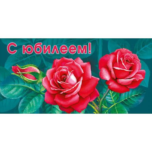 077.688 Конверт для денег "С Юбилеем! Красные розы" Тиснение блестками