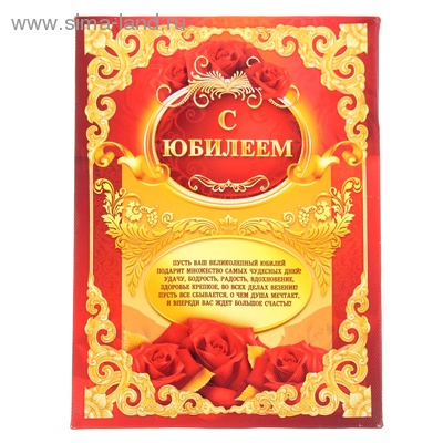 1152201 Диплом на холсте "С Юбилеем" Размер 14,3*19 см. с крепежами