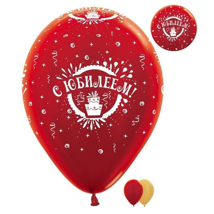 1226763 Шарик "С юбилеем!" Диаметр 30 см. Цвета красный и золото