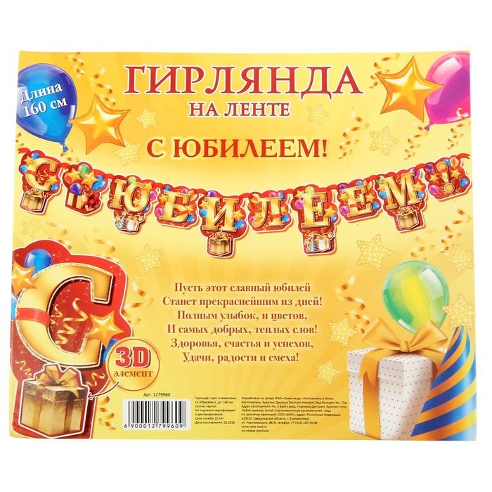 1279960 Гирлянда на ленте "С Юбилеем! Длина 160 см.