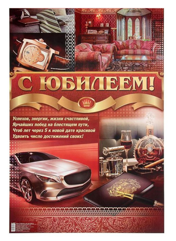 1600395 Плакат мужской " С Юбилеем! Авто" Размер 40*60 см.( мягкая основа)