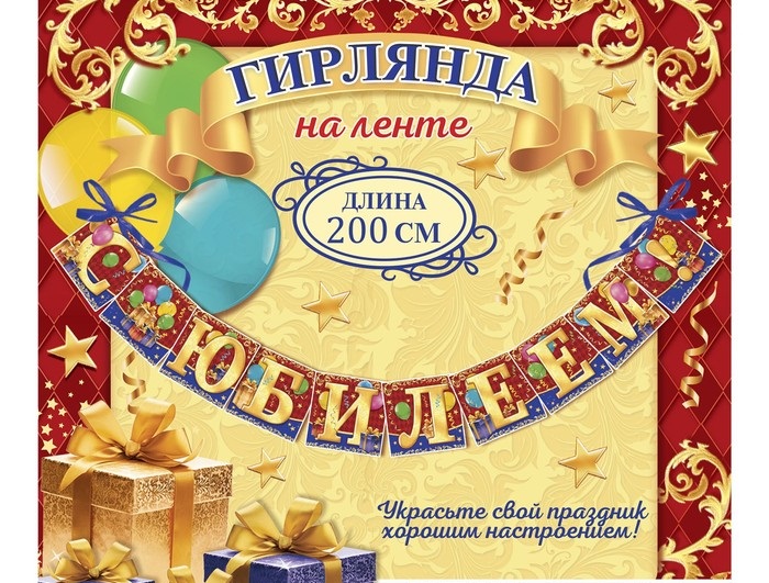 1689854 Гирлянда мужская "С Юбилеем!" Длина 135 см.