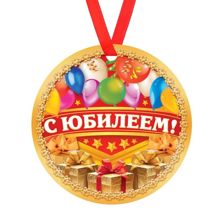 1693009 Медаль на ленте "С Юбилеем!" Картон Диаметр 8 см.