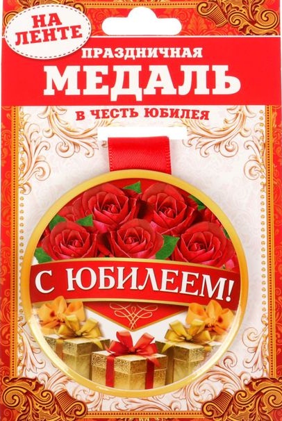 1902535 Медаль универ."С Юбилеем!" на ленте.Диаметр 7,5 см.Металл