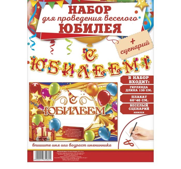 1945111Набор "С Юбилеем!": Гирлянда 198 см. + плакат 60 х 40 см. + сценарий