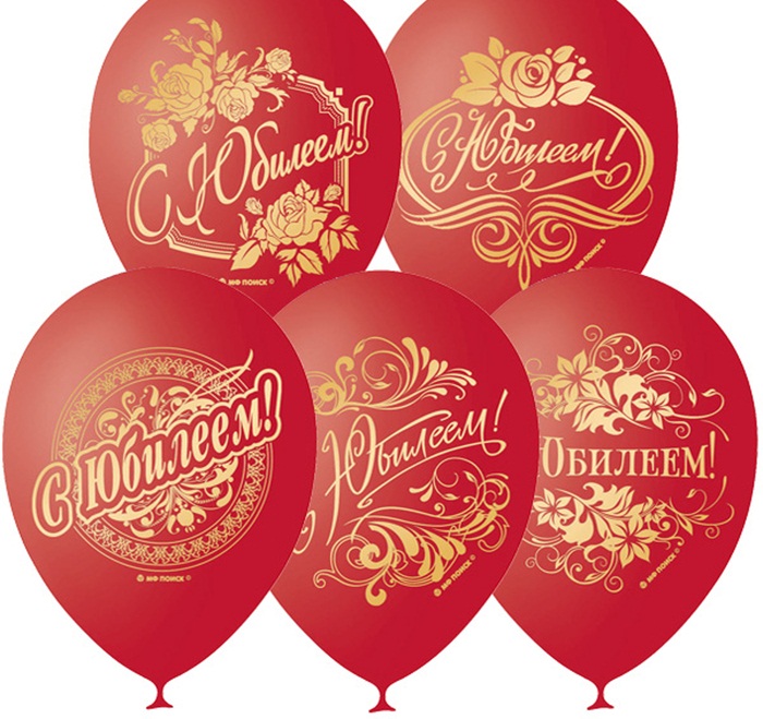 2839092 Шарик красный 2-сторонний "С Юбилеем!" Диаметр 30 см.Мексика