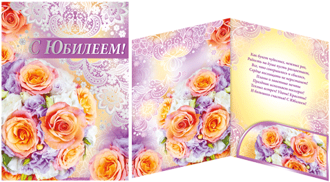 32.118.00 Открытка с конвертом "С Юбилеем! Цветы"Тиснение серебром Формат А4