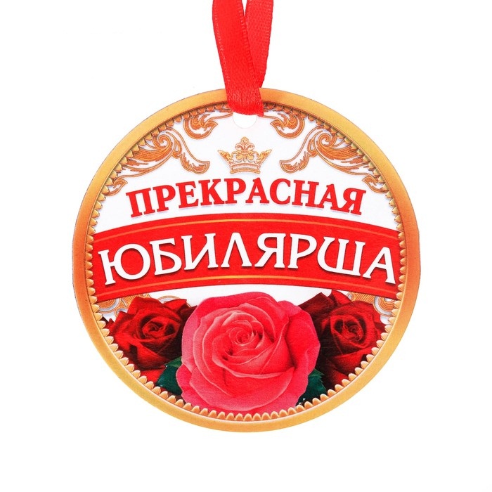 3628964 Медаль магнит "Прекрасная юбилярша" на ленте. Диаметр 7 см.