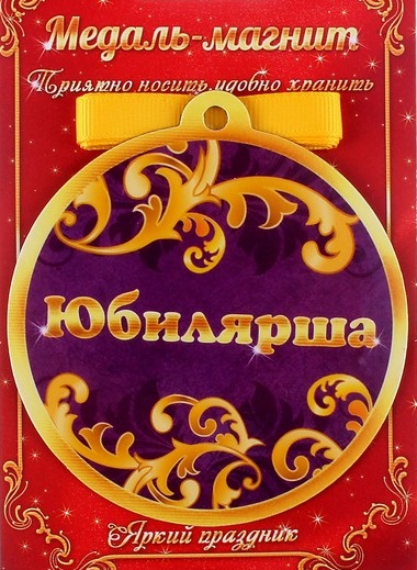 650303 Медаль магнит "Юбилярша" на ленте.Диаметр 8,5 см.