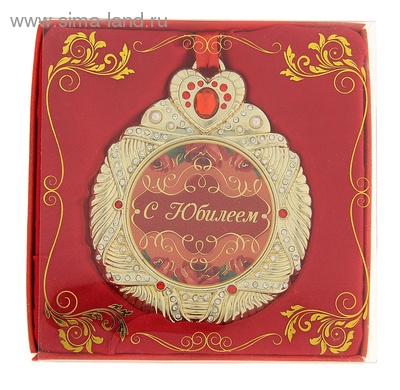 707721 Медаль красная "С Юбилеем!" на атласной ленте в подарочной коробке