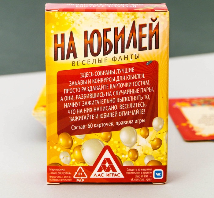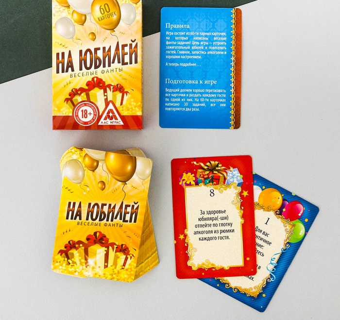 849077 Игра "Веселые фанты на юбилей" (60 карточек)