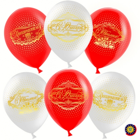 ДБ 711270 Шарик 5-сторонний "С Юбилеем!" Диаметр 30 см. Цвет красный и белый. Малайзия